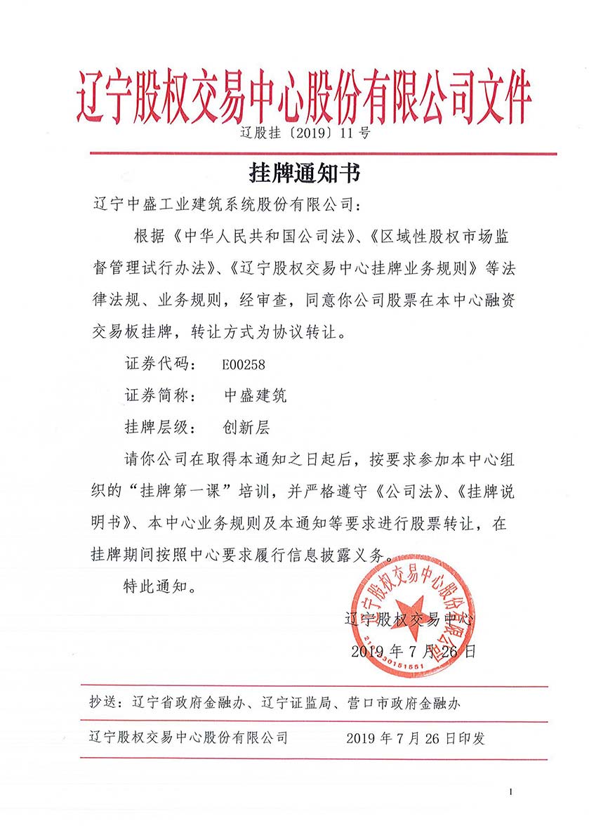 辽股交挂牌通知